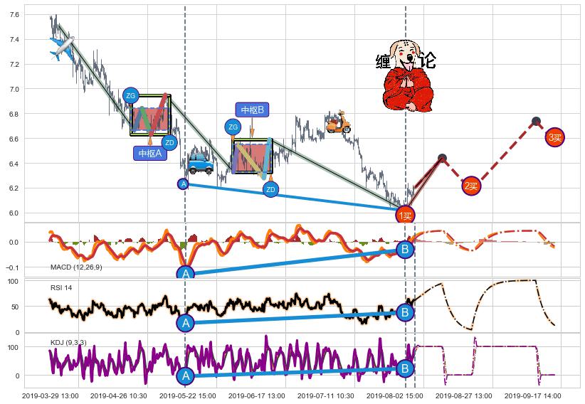 | 12 🅚:【高山滑雪】买入点 ➕ ☯️:缠论买卖点下降缠中枢AB形成后猜想拐点1买已到达,猜想后续持续拉升(均值回复) ☞ 看多信号 ⇥ 【均线】交织【图形】⇥ 综合量化分数: 53 | > |