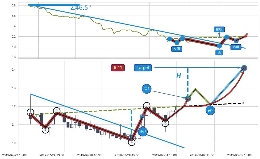 ➣ 【未确认突破,预测即将形成突破】头肩底起点:07-19:10, 预测突破点:08-01:10,形态共54交易小时