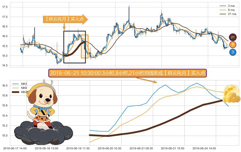 ⚀ 2019-06-19 11:30:00小时-2019-06-25 09:30:00小时显现 3小时-8小时-21小时均线 【烘云托月】买入点 看多信号,后市看涨,买入