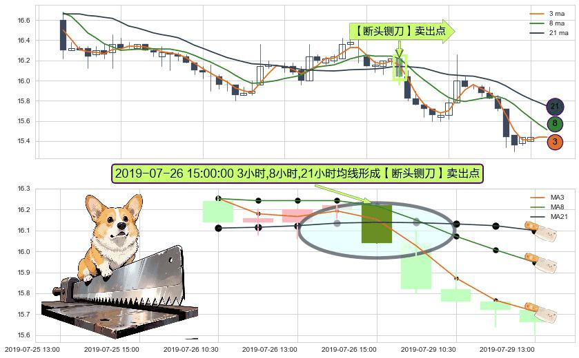 ⚀ 2019-07-26 15:00:00小时显现 3小时-8小时-21小时均线 【断头铡刀】卖出点 看空信号,后市看跌,卖出