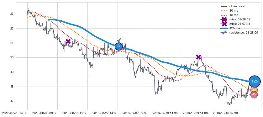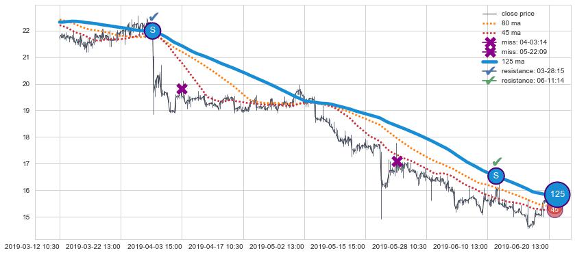 ⚃ 在破位点附近ma走势已有下垂迹象,稍后的走势中ma下降趋势明显,信号【可信度高】