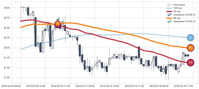 ⚂ 2019-06-28 09:30:00小时突然冒出一根大阳线,一下子顶穿三条均线且收盘价收在各条均线之上