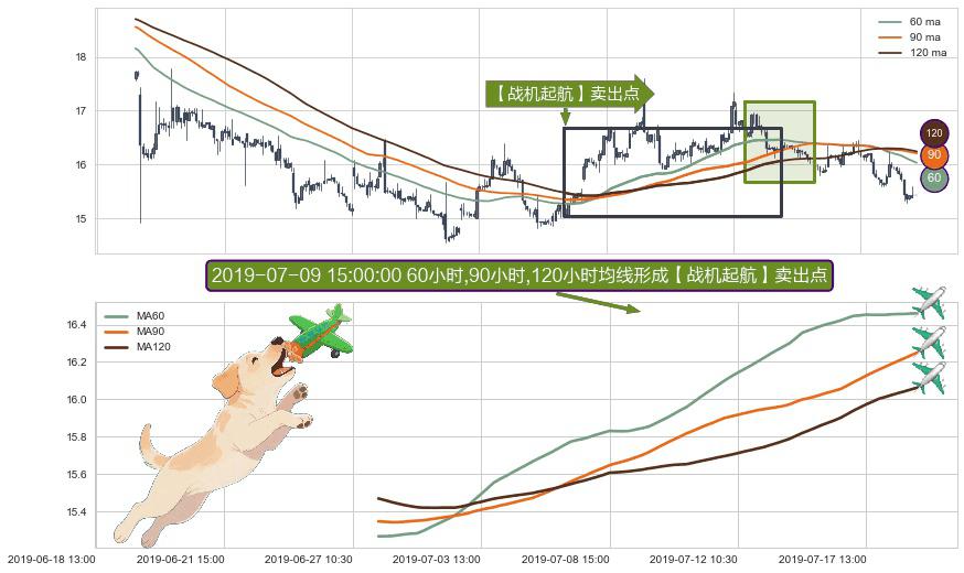 ⚀ 2019-06-27 15:00:00小时-2019-07-18 15:00:00小时显现 60小时-90小时-120小时均线 【战机起航】卖出点 看空信号,后市看跌,卖出