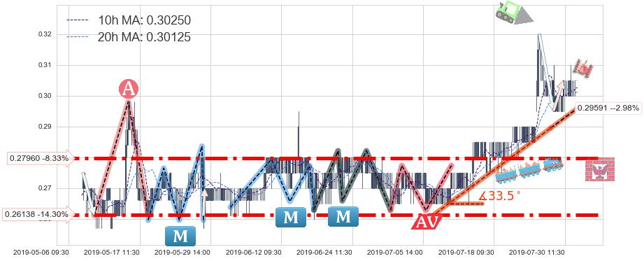 ➢ 07-29:09到达第❶价格目标位置0.29500