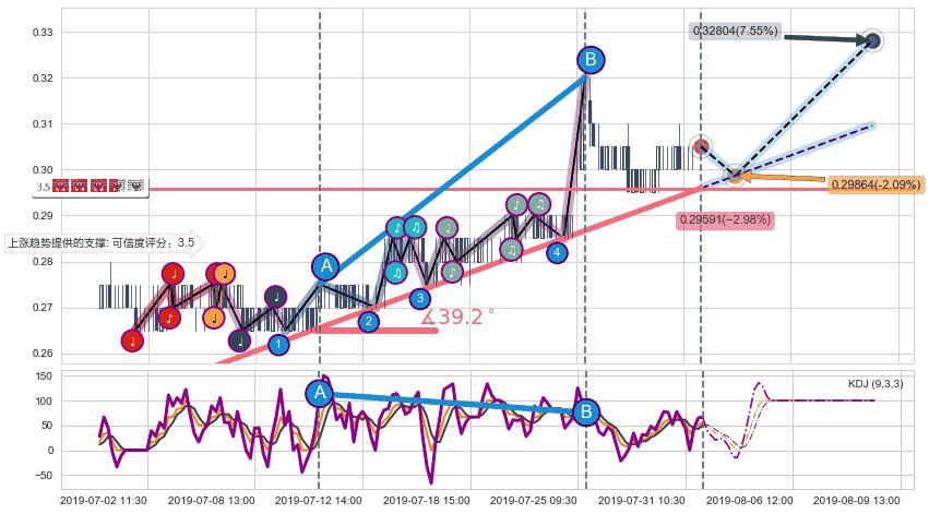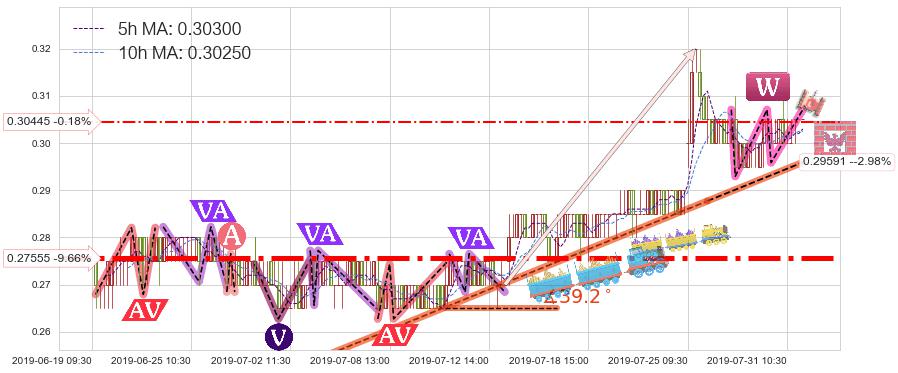 ➢ 预测:2019-08-02 11:00,【小幅回撤】稳定目前上涨趋势的前提下,预测价格:0.29864