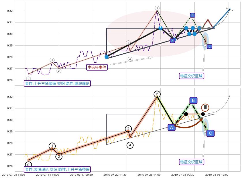 ➣ 【未确认突破,预测即将形成突破】上升三角形整理起点:07-18:11, 预测突破点:08-01:10,形态共59交易小时