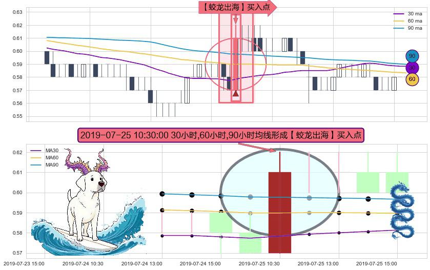 ⚀ 2019-07-25 10:30:00小时显现 30小时-60小时-90小时均线 【蛟龙出海】买入点 看多信号,后市看涨,买入