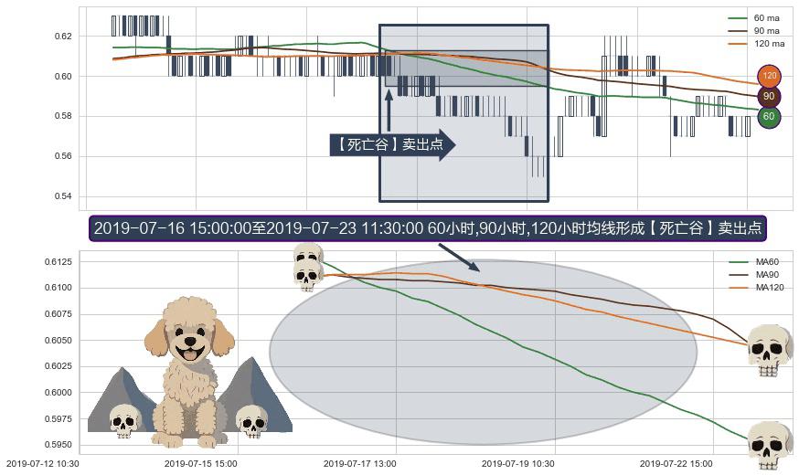 ⚀ 2019-07-17 09:30:00-小时至2019-07-23 11:30:00-小时显现 60小时-90小时-120小时均线 【死亡谷】卖出点 看空信号,后市看跌,卖出