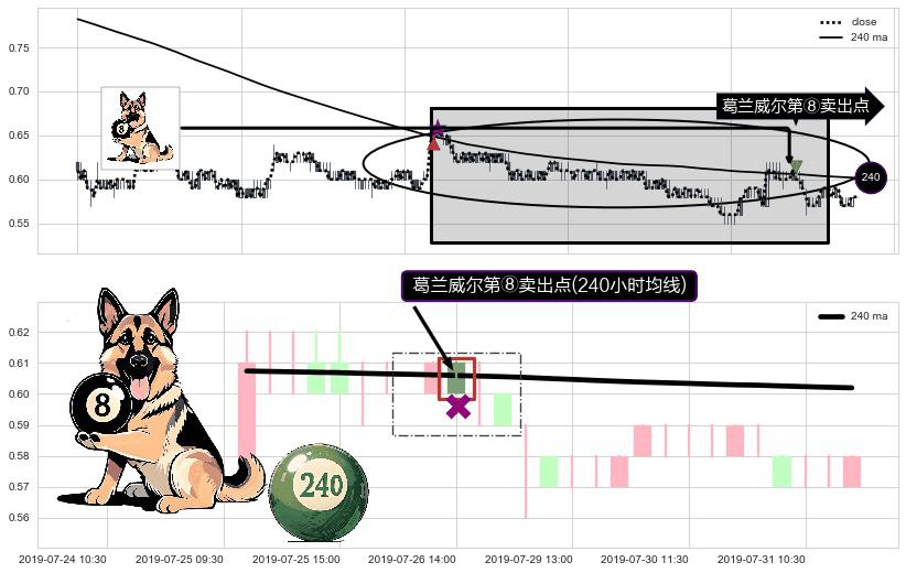 ⚀ 2019-07-26 14:00:00-小时显现 葛兰威尔均线 240小时均线 第⑧卖出点 下降趋势的中继信号,后市看跌,卖出信号