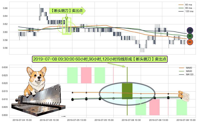 ⚀ 2019-07-08 09:30:00小时显现 60小时-90小时-120小时均线 【断头铡刀】卖出点 看空信号,后市看跌,卖出
