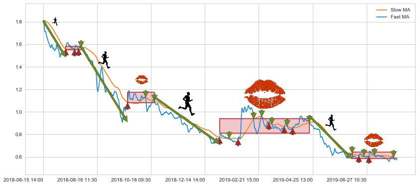 07-13 09:30至07-30 15:00 慢线与快线多次接触,存在上下穿越,有缠绕