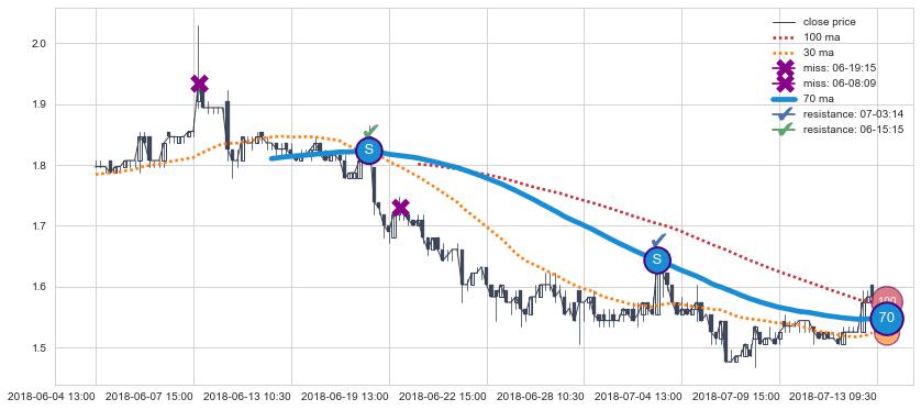 ⚂ 2019-07-02 10:30:00-小时均线向上突破,2019-07-26 14:00:00-小时重新下穿均线破位,均线阻力再次生效
