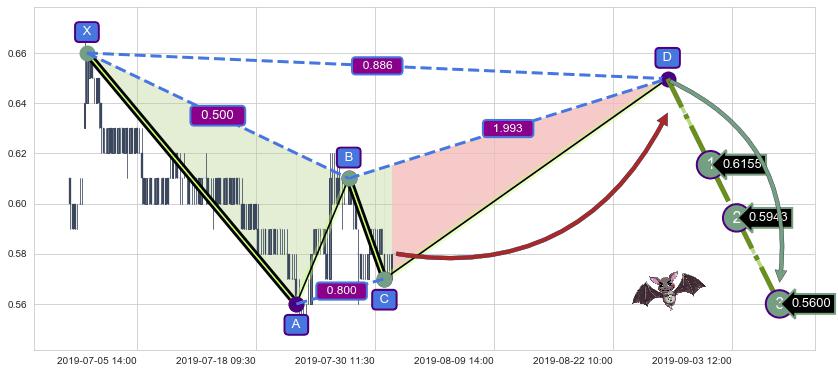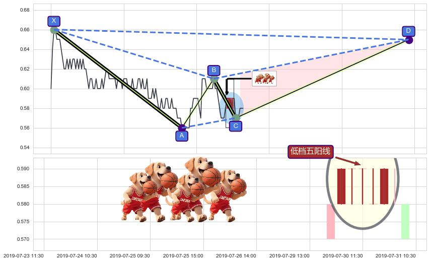 ➣ 未完成【蝙蝠】形态起点X: 07-02:10, 已到达C点: 07-31:09, 预测最终D点: 08-27:15, 共243交易小时