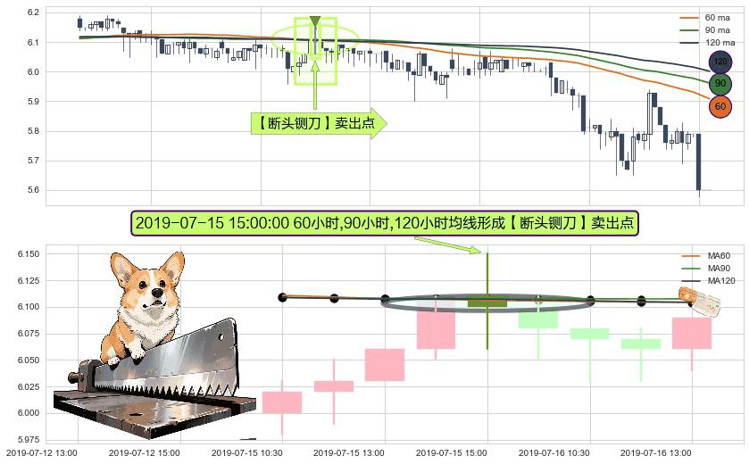 形态多维评估: ⚀ 2019-07-15 15:00:00小时显现 60小时-90小时-120小时均线 【断头铡刀】卖出点 看空信号,后市看跌,卖出