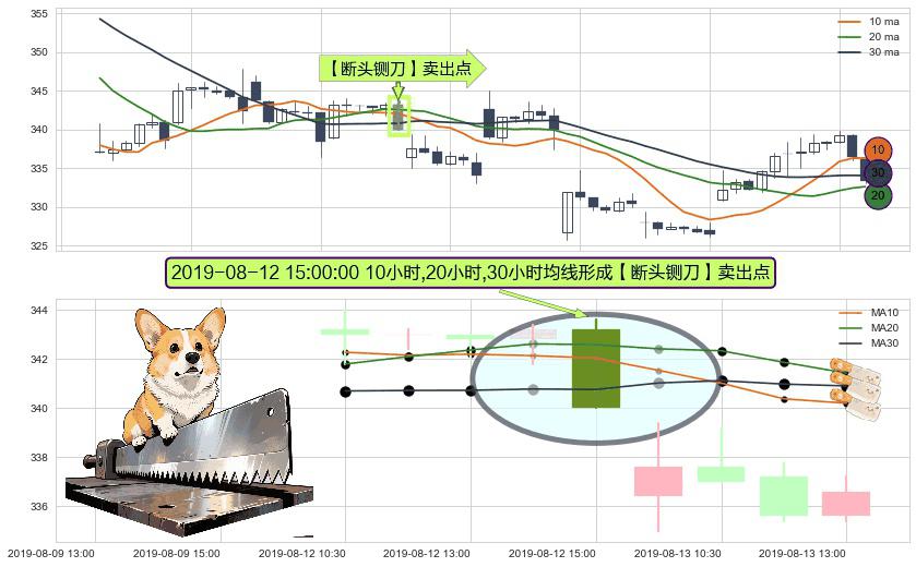 形态多维评估: ⚀ 2019-08-12 15:00:00小时显现 10小时-20小时-30小时均线 【断头铡刀】卖出点 看空信号,后市看跌,卖出