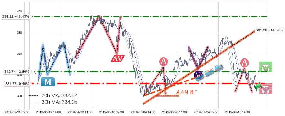 ♘ 阻力价格位342.74,可信任强度83.04%,距离最后交易2019-08-20 15:00形成的收盘价格333.40相差 +2.80%