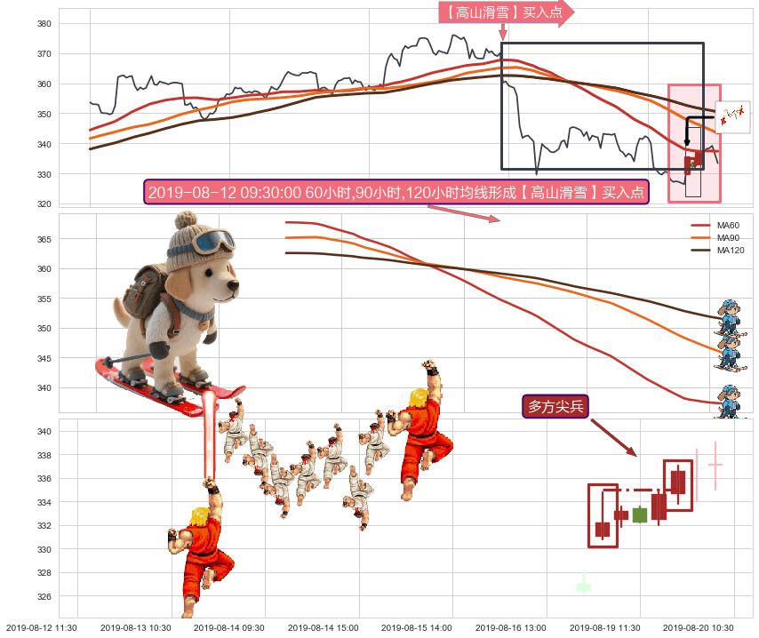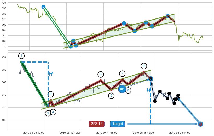 ➢ 最后的上涨趋势2019-05-27 11:30至2019-08-01 15:00:存在破位迹象,后续小调整或者反转下跌