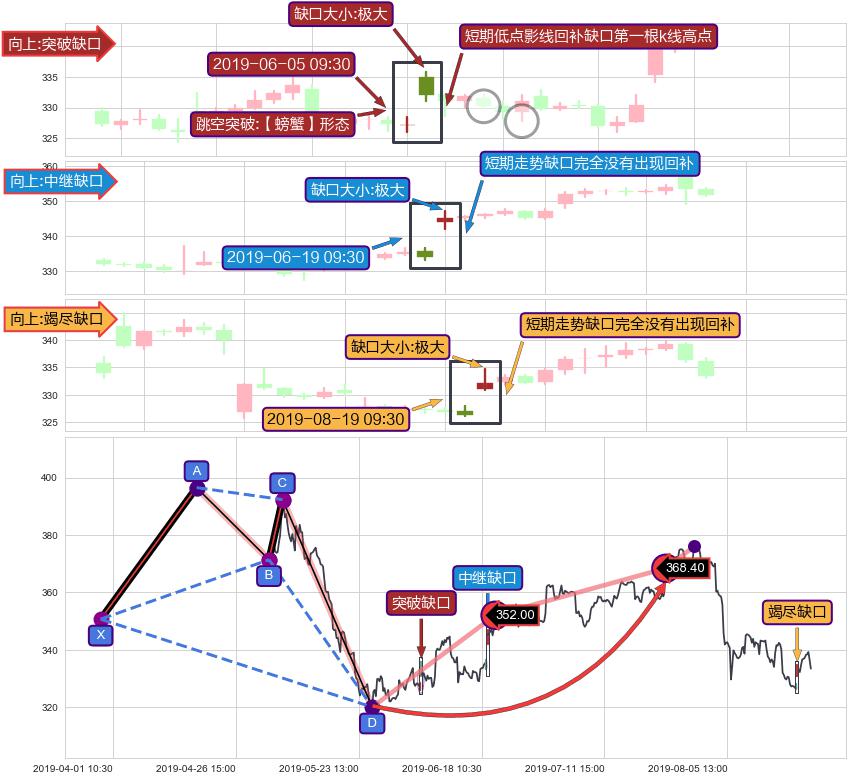 ➢ 2019-08-19 09:30形成:向上跳空【竭尽】缺口