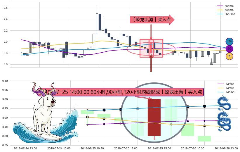 ⚀ 2019-07-25 14:00:00小时显现 60小时-90小时-120小时均线 【蛟龙出海】买入点 看多信号,后市看涨,买入