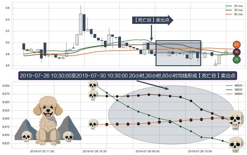 ⚀ 2019-07-26 11:30:00-小时至2019-07-30 10:30:00-小时显现 20小时-30小时-60小时均线 【死亡谷】卖出点 看空信号,后市看跌,卖出