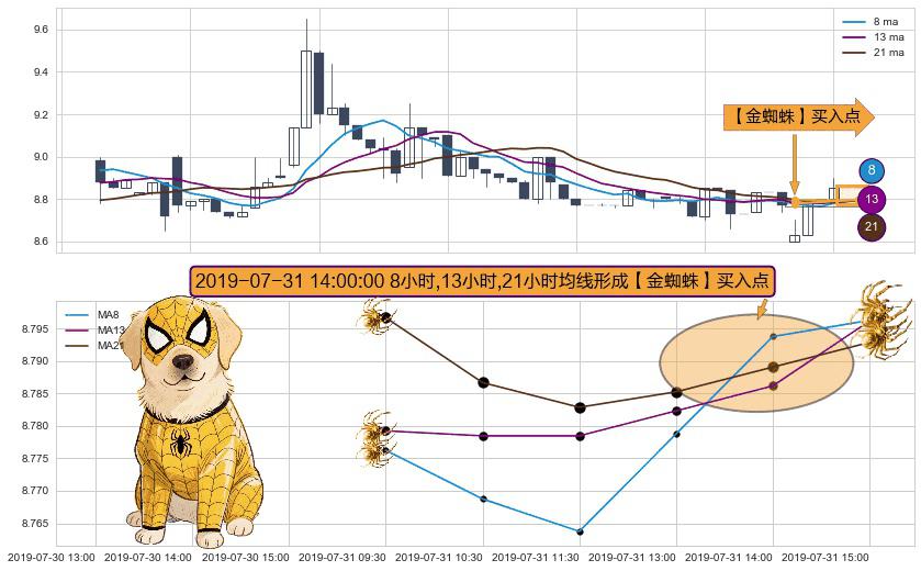 ⚀ 2019-07-31 14:00:00小时显现 8小时-13小时-21小时均线 【金蜘蛛】买入点 看多信号,后市看涨,买入