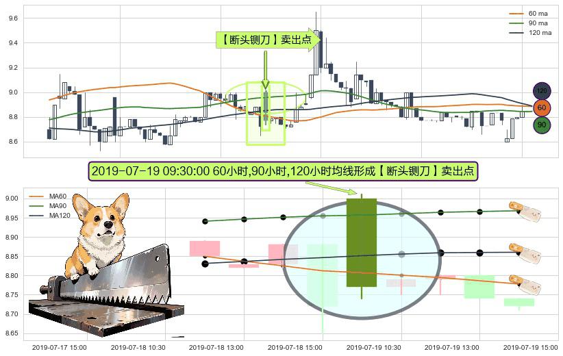 ⚀ 2019-07-19 09:30:00小时显现 60小时-90小时-120小时均线 【断头铡刀】卖出点 看空信号,后市看跌,卖出