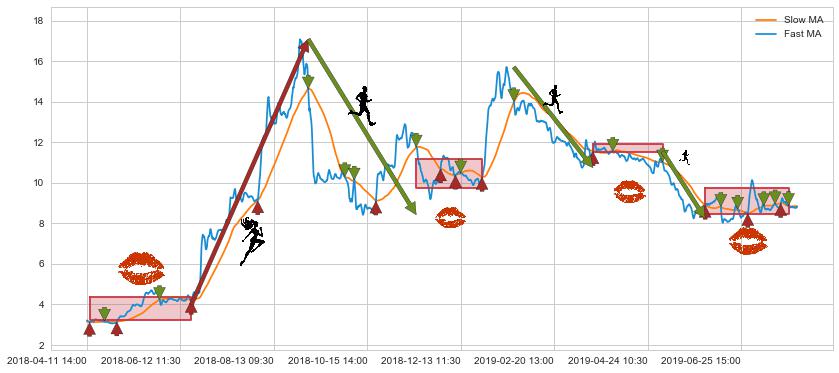 04-12 15:00至06-20 10:30 慢线与快线多次接触,存在上下穿越,有缠绕