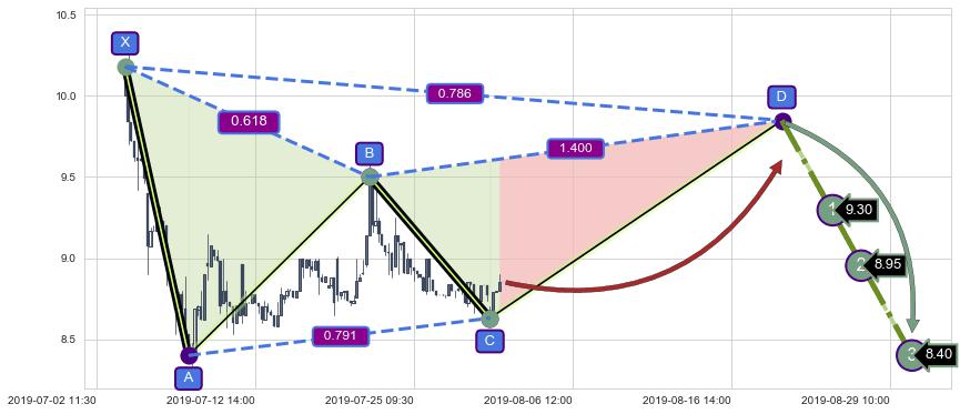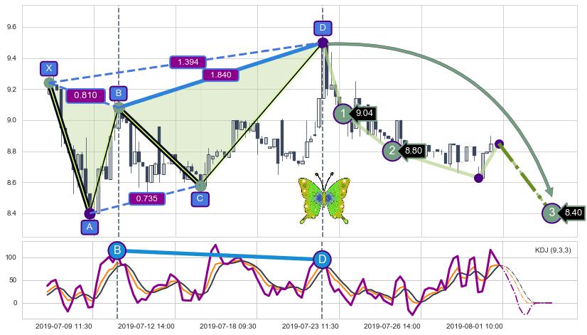 ➣ 已完成【蝴蝶】形态起点X: 07-05:13, 终点D: 07-22:14, 共68交易小时
