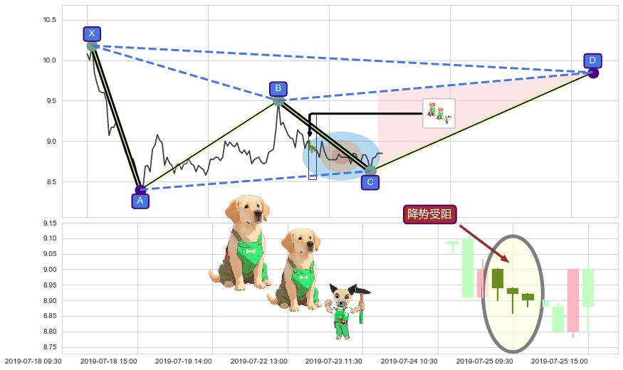 ➣ D点拟合预测价格9.85,距离最后交易收盘价格8.85相差 +11.28%