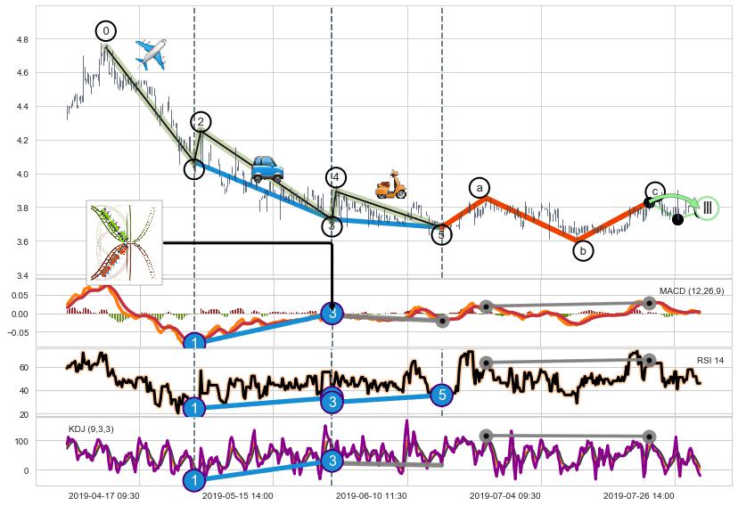 ➣ a,c调整浪MACD走势未出现明显背离