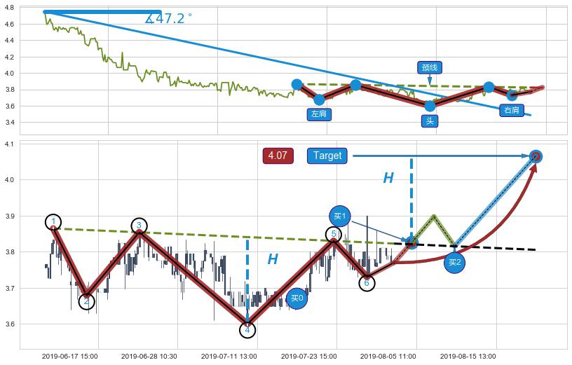 ➣ 最小反转涨幅→𝐇: 0.240732 (头部与颈线垂直距离)