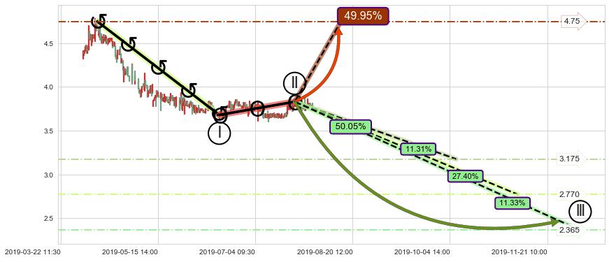 ➢ 循环浪继续向下【最低】位置(12-06:11, 2.365),匹配聚类样本比例22.65%, 可能性概率11.33%