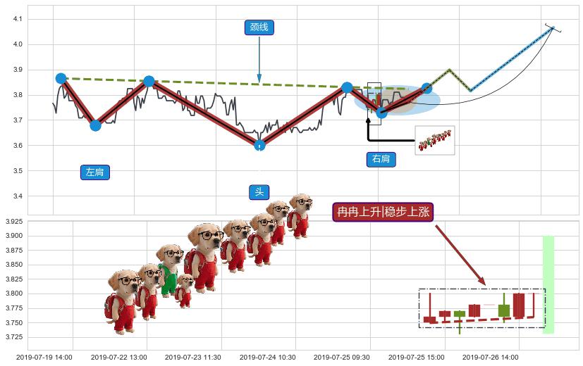 | 3 🅚:上涨两颗星 | 上涨三颗星 ➕ 📐:头肩底猜想突破点临近,临近关键阻力位,预期拉升突破上涨 ☞ 看多信号 ⇥ 【🅚线】交织【图形】⇥ 综合量化分数: 58 | > |
