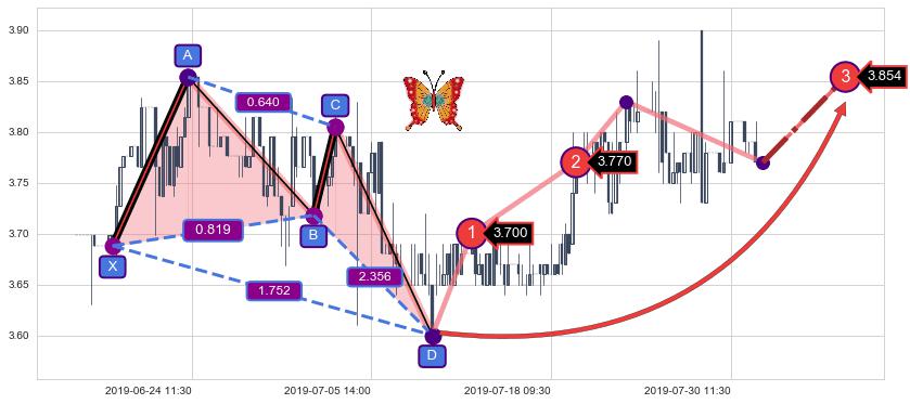 ➣ 已完成【蝴蝶】形态起点X: 06-18:14, 终点D: 07-10:13, 共90交易小时