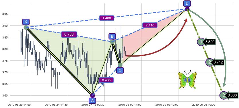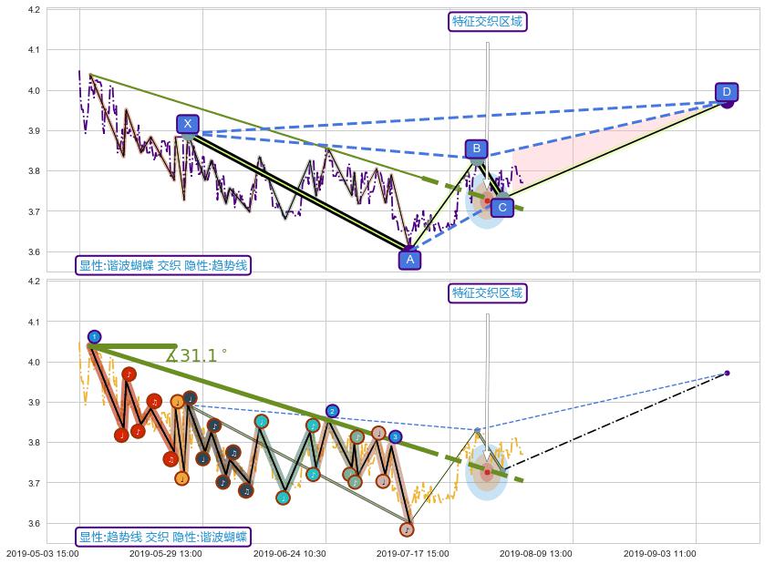 ➣ 未完成【蝴蝶】形态起点X: 05-27:13, 已到达C点: 07-29:09, 预测最终D点: 09-09:12, 共429交易小时