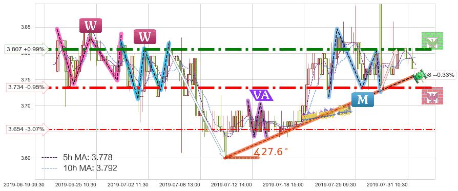 ♘ 阻力价格位3.807,可信任强度89.42%,距离最后交易2019-07-31 15:00形成的收盘价格3.770相差 +0.99%