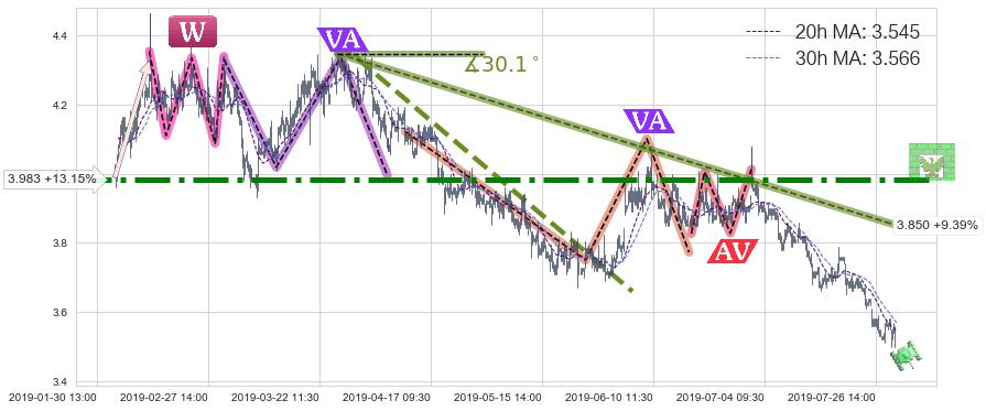 2019-07-02: 第一阻力位3.983强力阻拦了上升趋势,成功阻止了价格的继续上涨。
