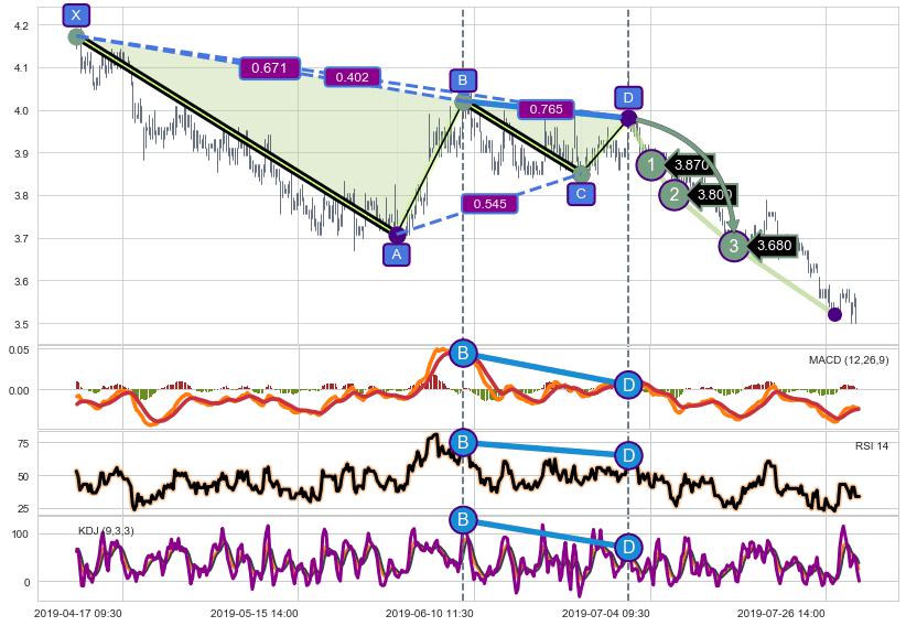 ➢ 谐波价格D点比B点高 ⤴,【KDJ】指标D点比B点低 ⤵️