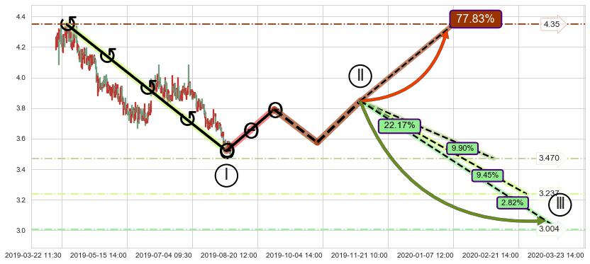 ➢ 循环浪继续向下【最低】位置(03-23:14, 3.004),匹配聚类样本比例12.72%, 可能性概率2.82%