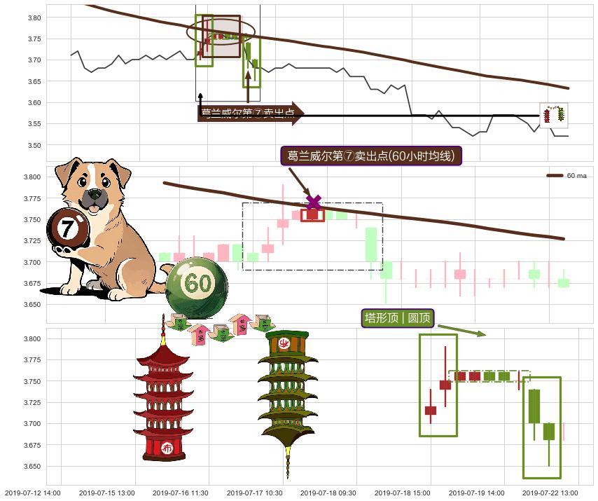 从2019-06-24 13:00至2019-07-11 09:30,共包含70个小时,阶段股价下跌-0.42%,阶段股价变动位移路程比: 1 : 63