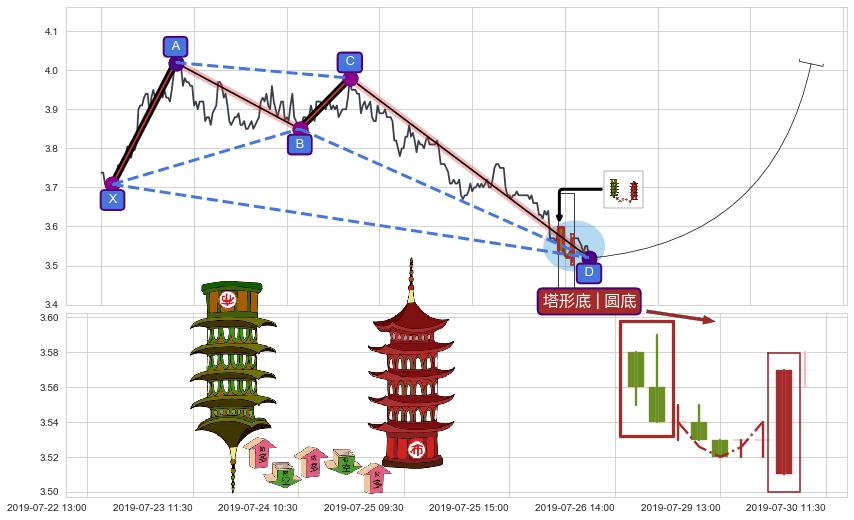 ➣ 已完成【螃蟹】形态起点X: 05-29:14, 终点D: 07-31:13, 共258交易小时