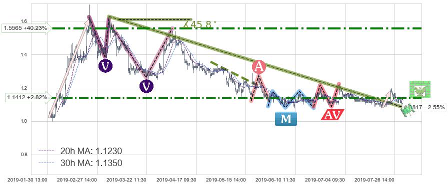 ♘ 阻力价格位1.1412,可信任强度69.70%,距离最后交易2019-07-31 15:00形成的收盘价格1.1100相差 +2.82%