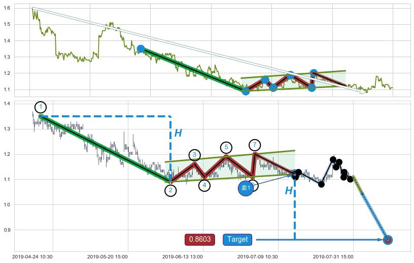 ➣ 最小中继整理跌幅→𝐇: 0.26000 (𝐇旗杆的长度:旗杆起点→顶点)