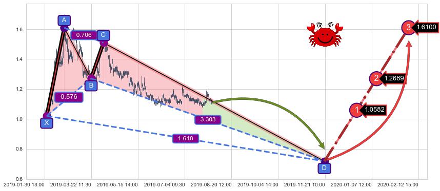 ➣ 未完成【螃蟹】形态起点X: 02-01:09, 已到达C点: 04-04:09, 预测最终D点: 11-20:14, 共1147交易小时