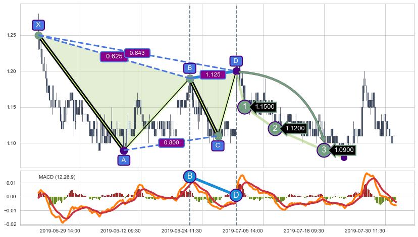 ➢ 谐波价格D点比B点高 ⤴,【MACD】指标D点比B点低 ⤵️