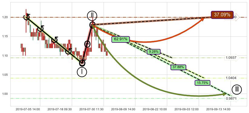 ➣ 大趋势循环浪继续向下概率62.91%