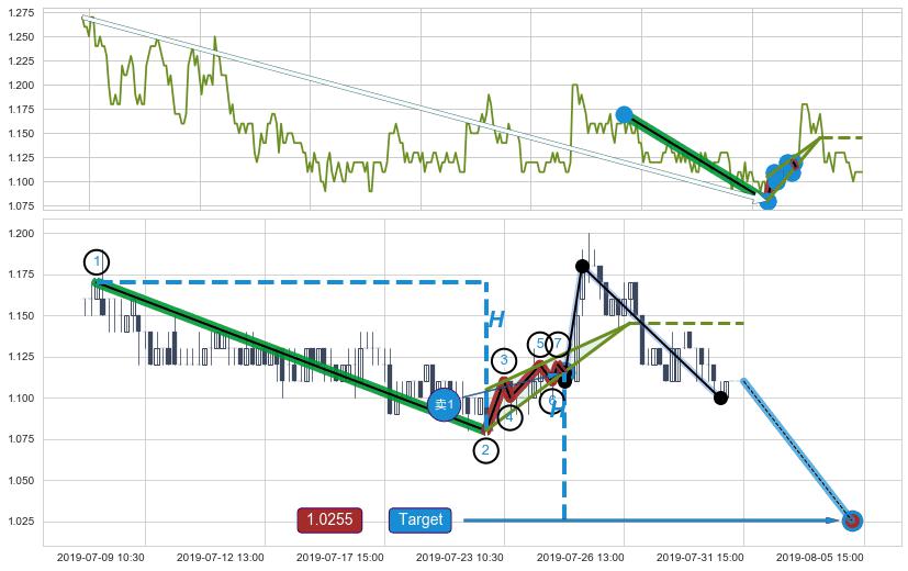 ➢ 07-18:09到达第❸价格目标位置1.0900