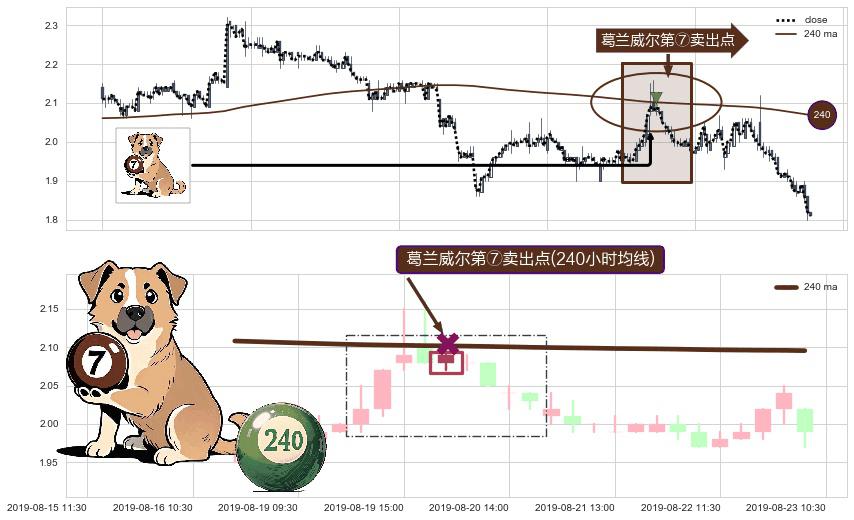形态多维评估: ⚀ 2019-08-20 10:30:00-小时显现 葛兰威尔均线 240小时均线 第⑦卖出点 下降趋势的中继信号,后市看跌,卖出信号