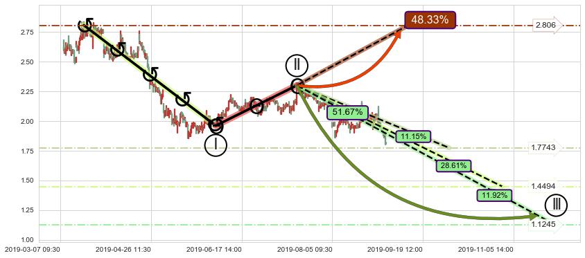 ➢ 预测:2019-10-29 11:00,【继续下探】稳定目前下跌趋势的前提下,预测价格:1.4805