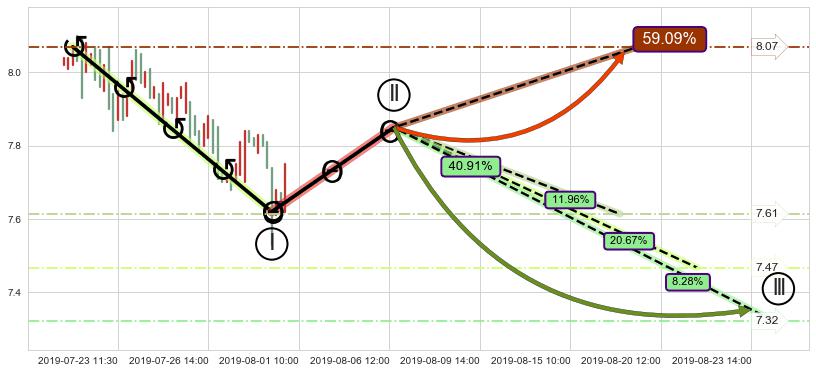 ➢ 循环浪继续向下【最高】位置(08-16:15, 7.61),匹配聚类样本比例29.24%, 可能性概率11.96%